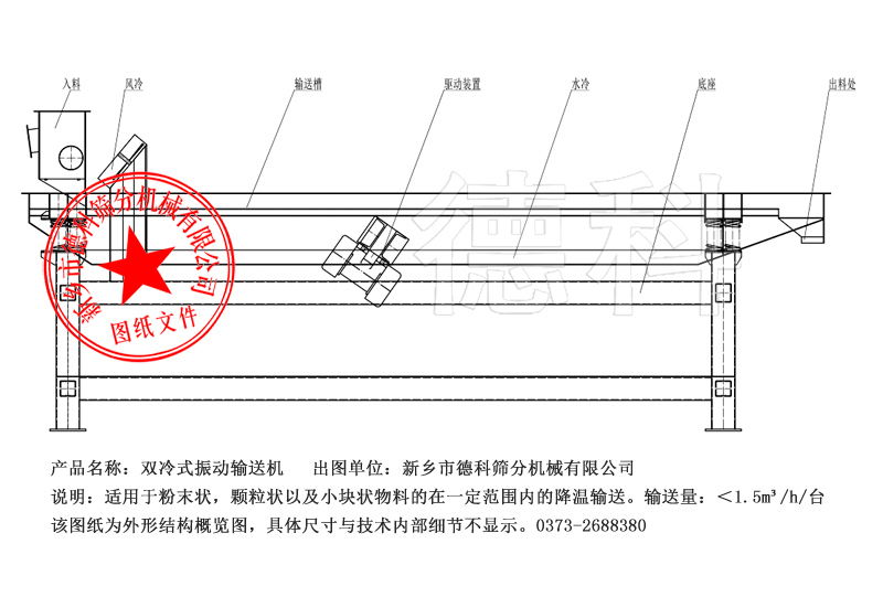 本圖紙適用于德科設計并制造的雙冷式振動輸送機(降溫輸送機),該產品地址: